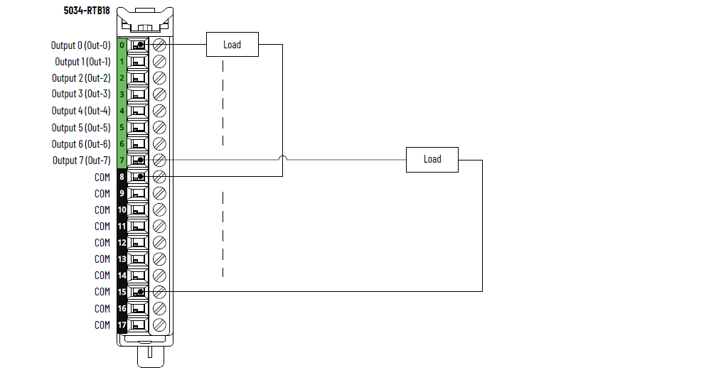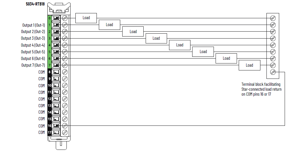 Schema di cablaggio di 5034-OB8 e 5034-OB8XT – Cablaggio di ritorno