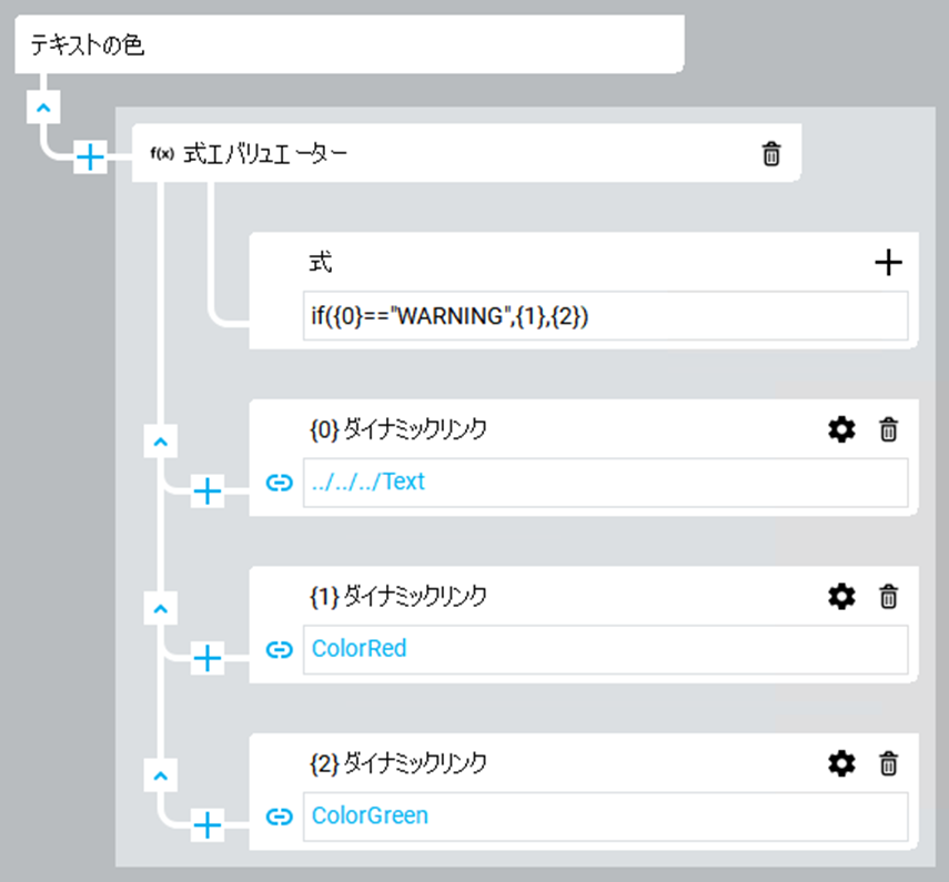 ラベルテキストが「WARNING」と等しい場合は、ラベルテキストの色を赤に変更します