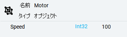 - 数値 (Int32) を持つ[Speed]変数は、Motor オブジェクトの速度を定義します。