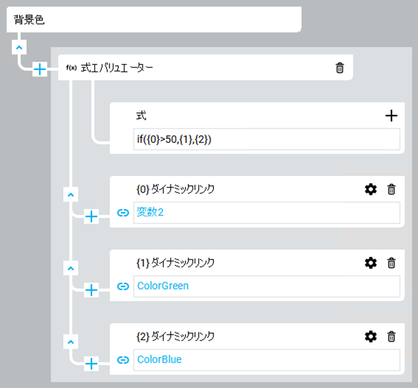 変数値が 50 より大きい場合は、グラフィックオブジェクトの背景色を青に変更します