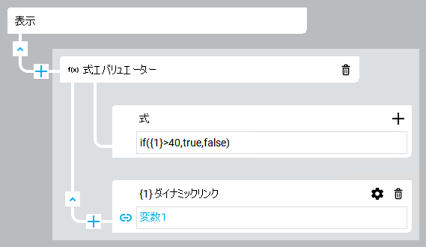 変数値が 40 より大きい場合、グラフィックオブジェクトの表示/非表示を切り替えます