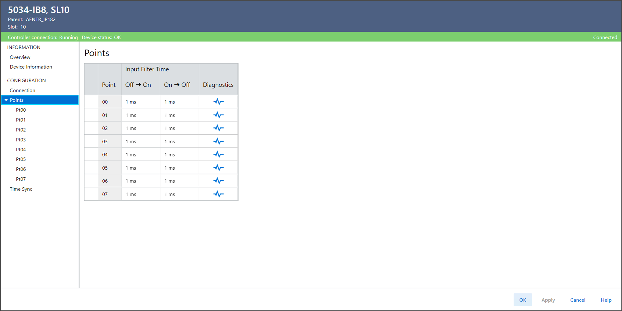Ptxx Diagnosticsを表示するには、PointsまたはPtxxビューでDiagnosticsを選択します。