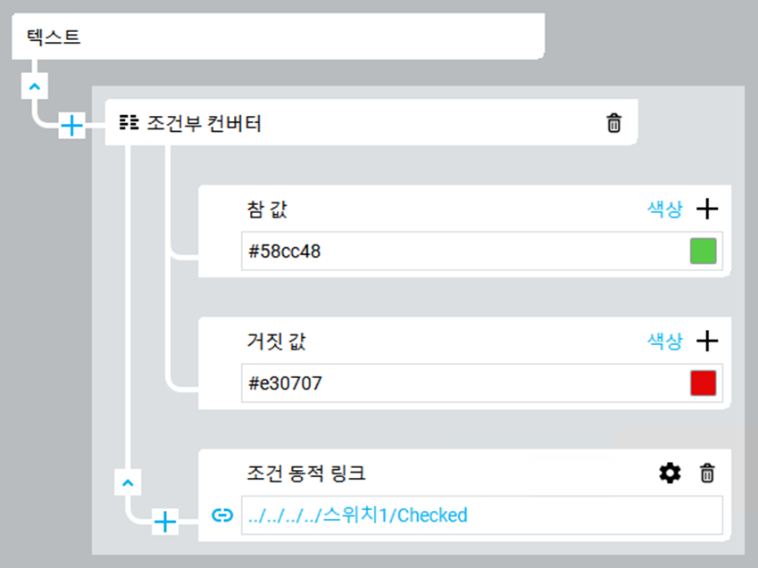 - 스위치를 선택한 경우 레이블의 텍스트 색상을 녹색으로 설정합니다.