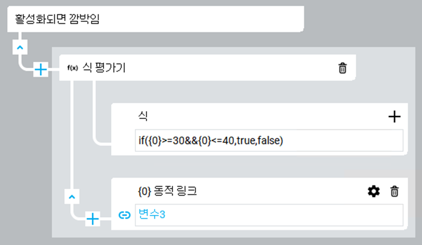 변수 값이 30에서 40 사이이면 활성 상태일 때 녹색 LED 개체가 깜박입니다.