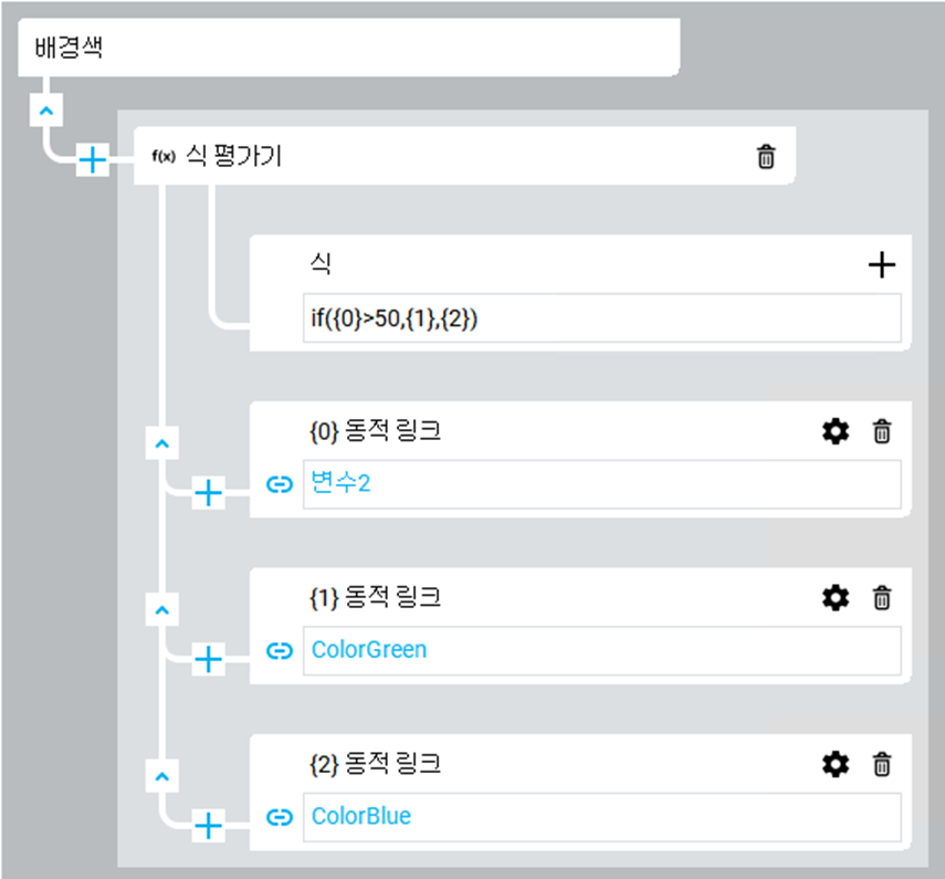 변수 값이 50보다 크면 그래픽 개체의 배경색이 파란색으로 변경됩니다.