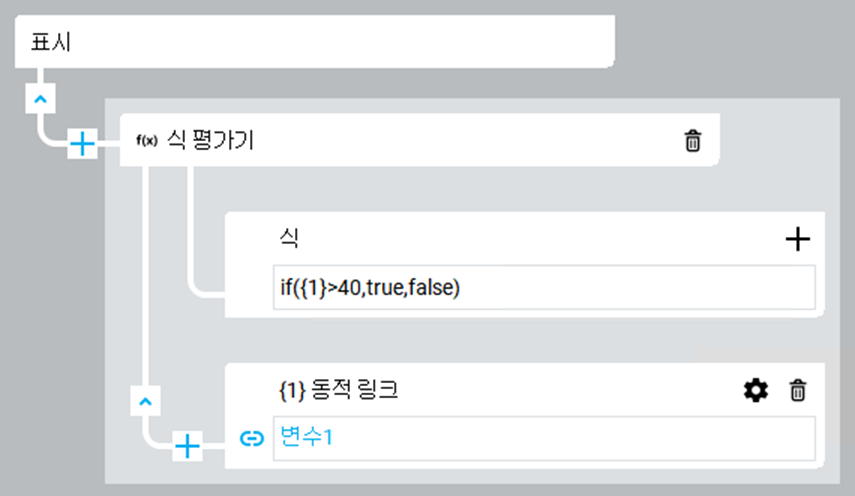 변수 값이 40보다 크면 그래픽 개체의 표시 여부가 전환됩니다.