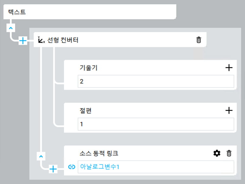 구성된 선형 변환에 기반하여 크기 조정된 값입니다.