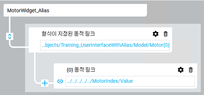 - 중괄호 안에 자리 표시자를 추가하여 동적 링크를 편집합니다.예:/Objects/ProjectName/Model/Motor{0}