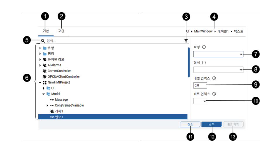 ![]() | 속성 | 선택 노드에 적용할 OPC UA 속성 |