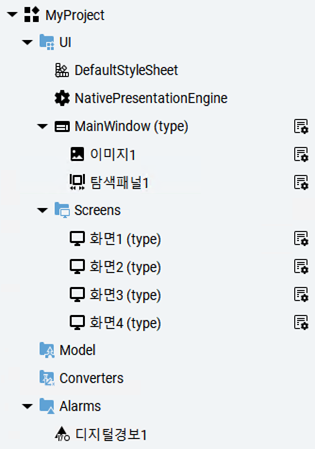 정보 모델은 프로젝트의 노드를 구성합니다. 기본 프로젝트 노드는 루트 노드입니다.