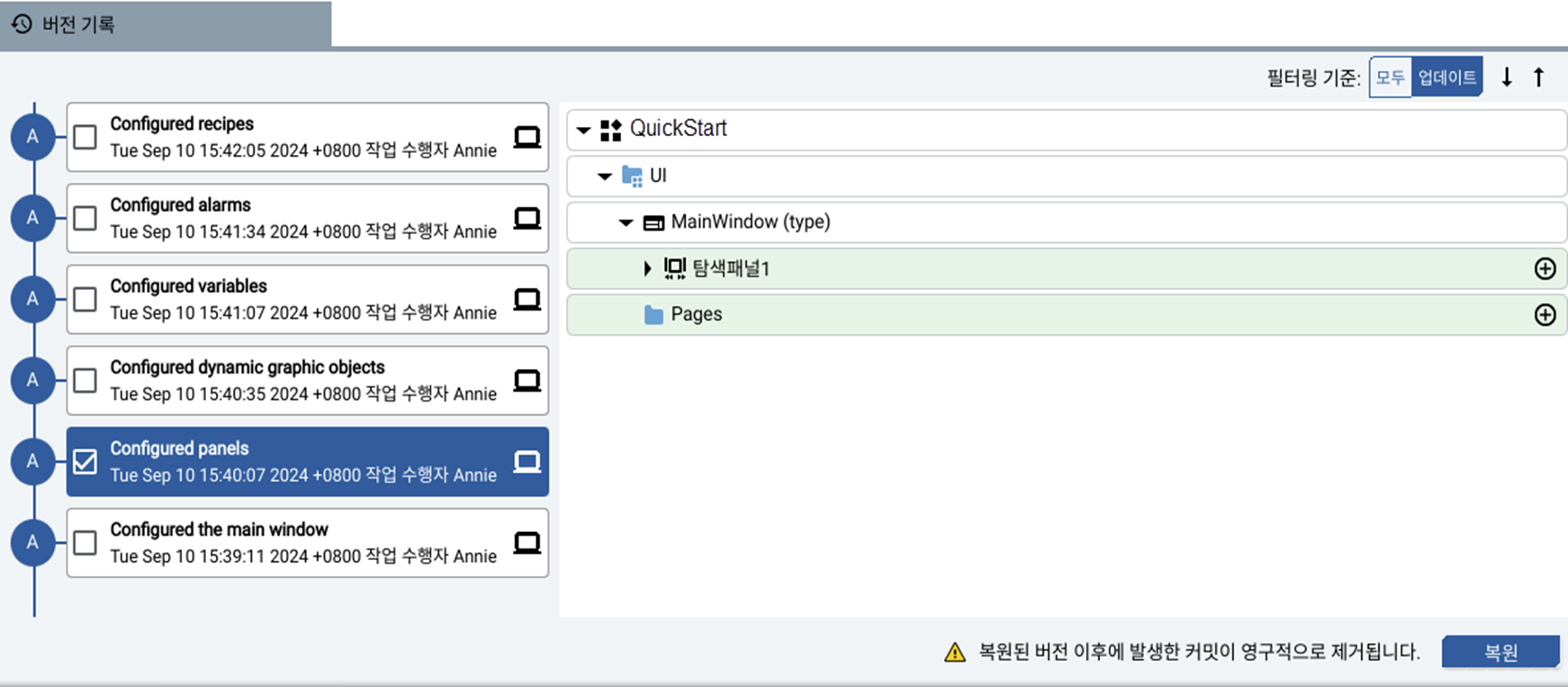 커밋 기록을 보고 프로젝트를 커밋으로 복원하려면