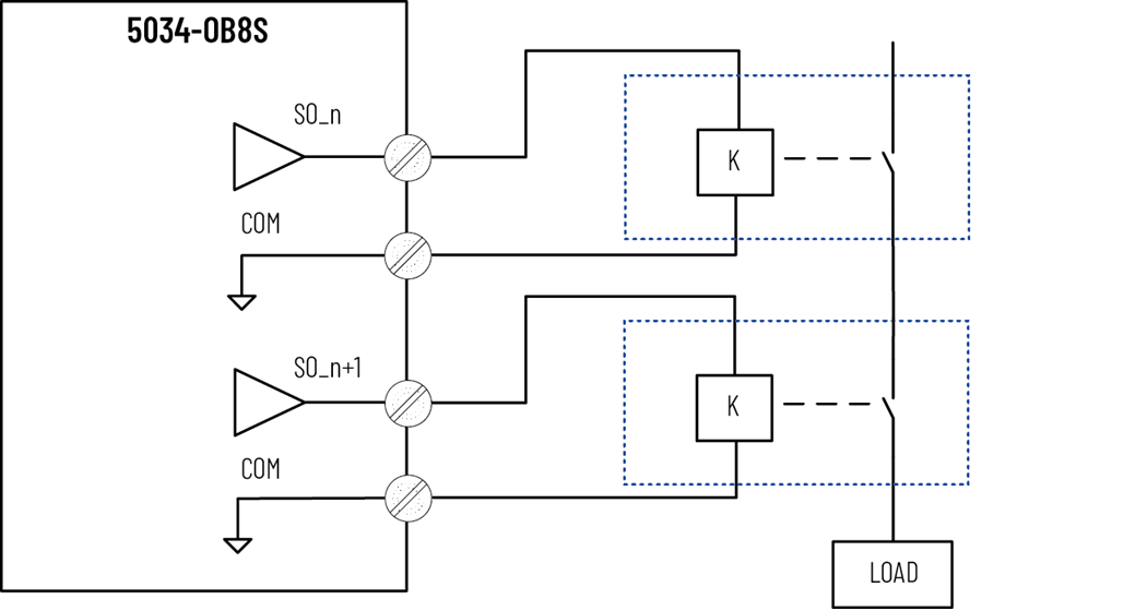 외부 케이블 간 단락이 양극(즉, SA+)과 SO_n 사이에 발생할 경우, 부하는 더 이상 차단할 수 없습니다. 모듈이 채널 폴트를 감지하고 폴트