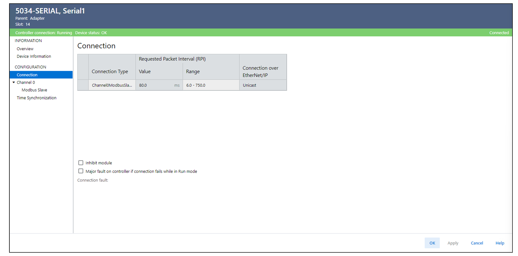 - 컨트롤러가 Run Mode에 있는 동안 연결 실패에 대한 폴트 응답을 구성합니다.