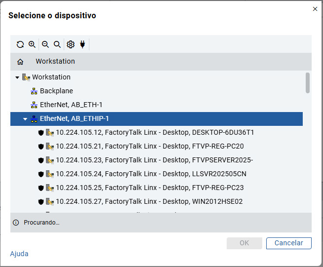 - NoFactoryTalk Design Workbench, abraSelecione o dispositivoseguindo um destes procedimentos: