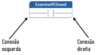 O estado da linha de conexão à direita do contato é a lógica AND entre o estado da linha de conexão esquerda e o valor da variável associada ao contato.