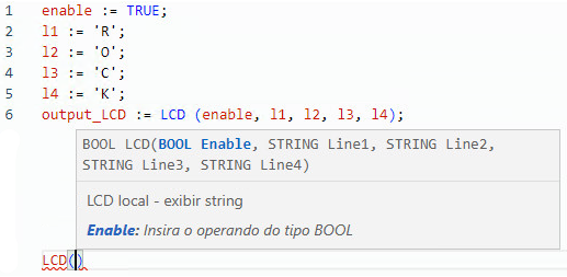 LCD | Saída | BOOL | TRUE: Função está habilitada. |