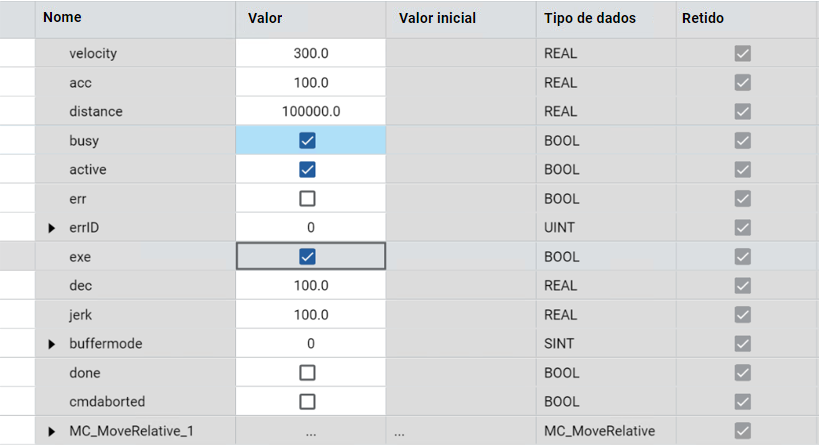A instrução MC_MoveRelative comanda um movimento controlado para uma distância especificada com relação à posição real no tempo de execução.