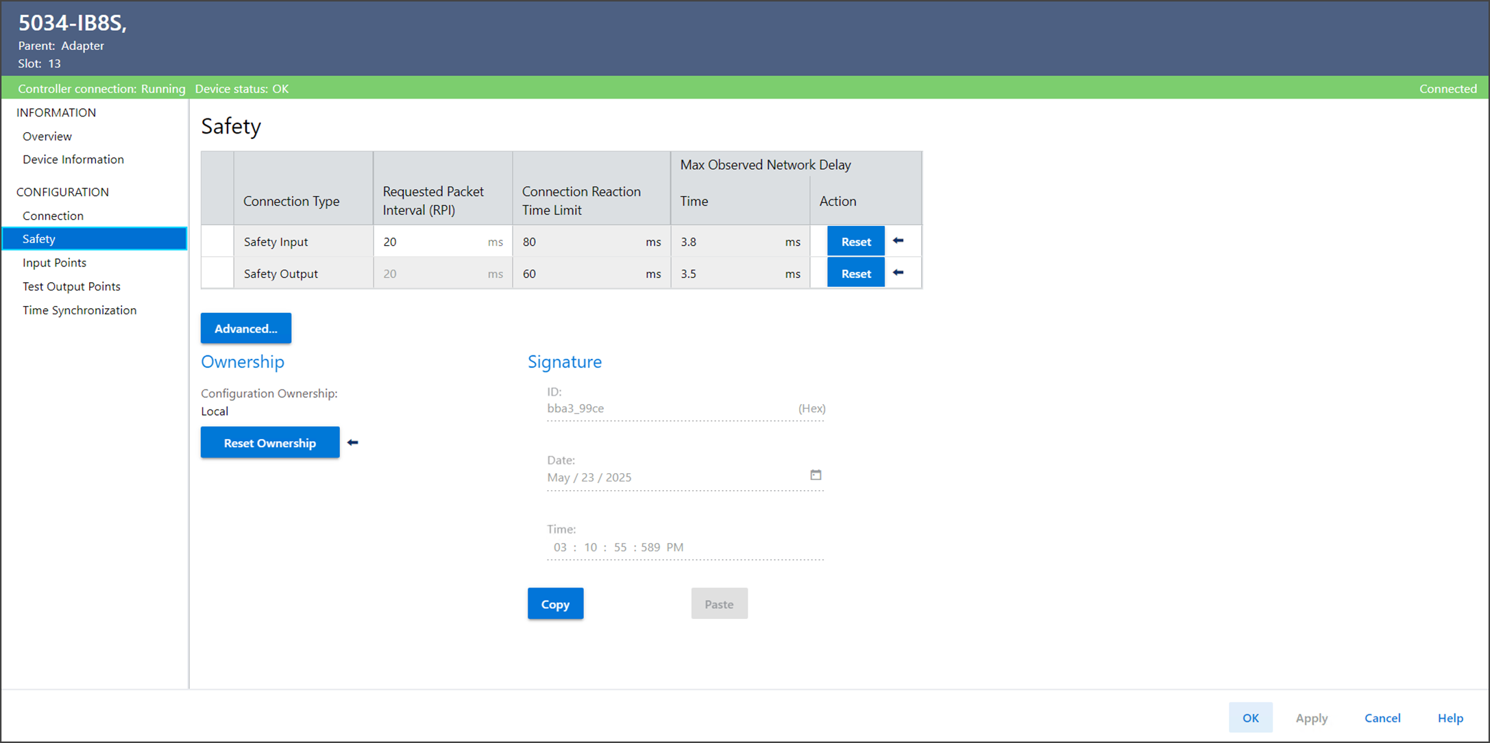 Para alterar a configuração do Limite de tempo de reação da conexão, selecione Avançado na visualização Segurança. Para obter mais informações, consulte Limite de tempo de reação de conexão com os módulos de segurança.