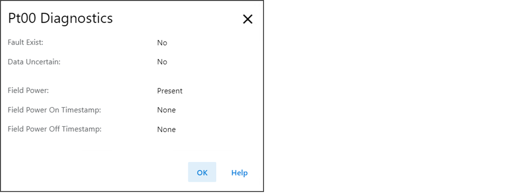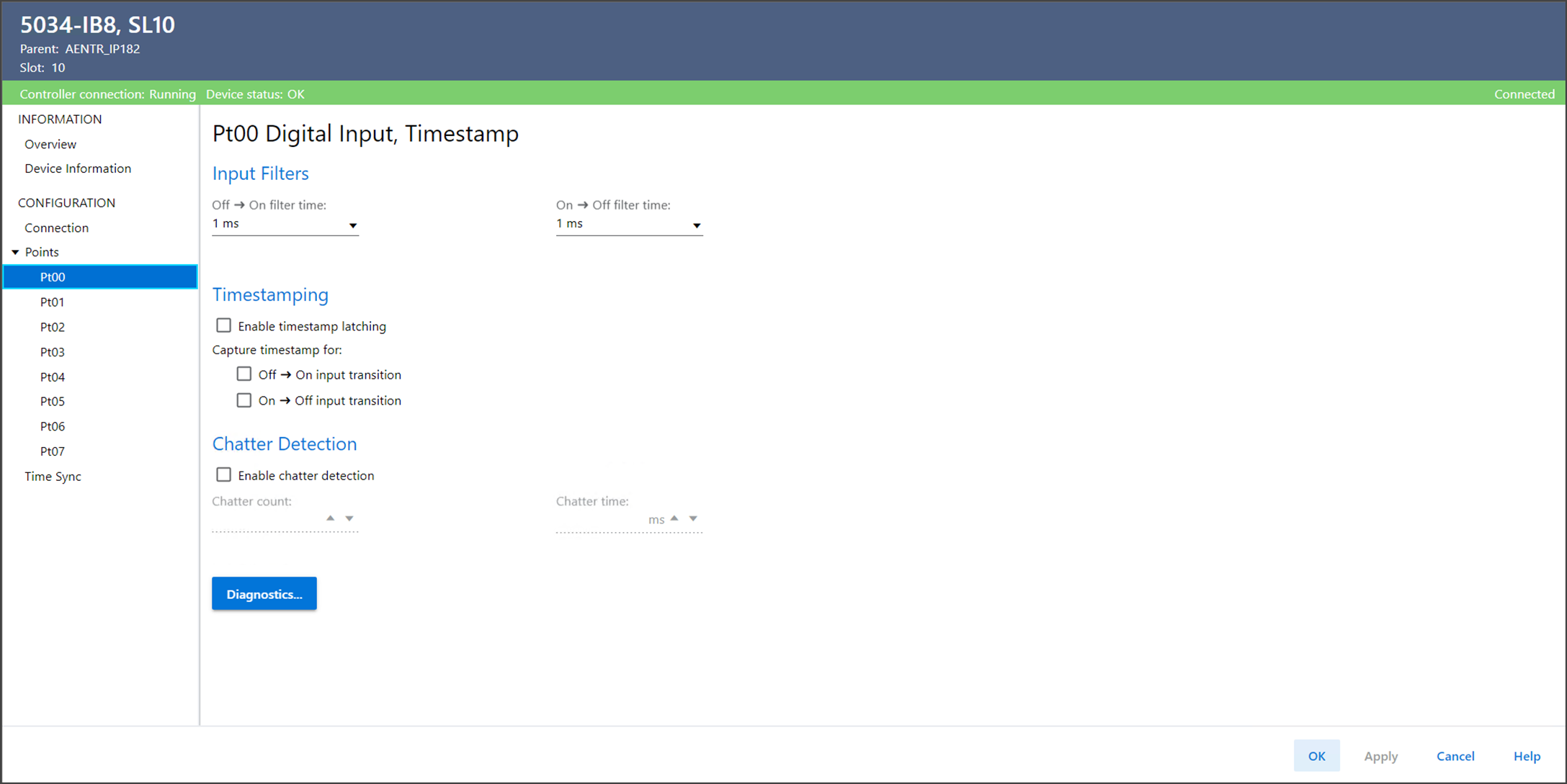 Para visualizar os diagnósticos Ptxx, selecione Diagnostics na visualização Pontos ou Ptxx.