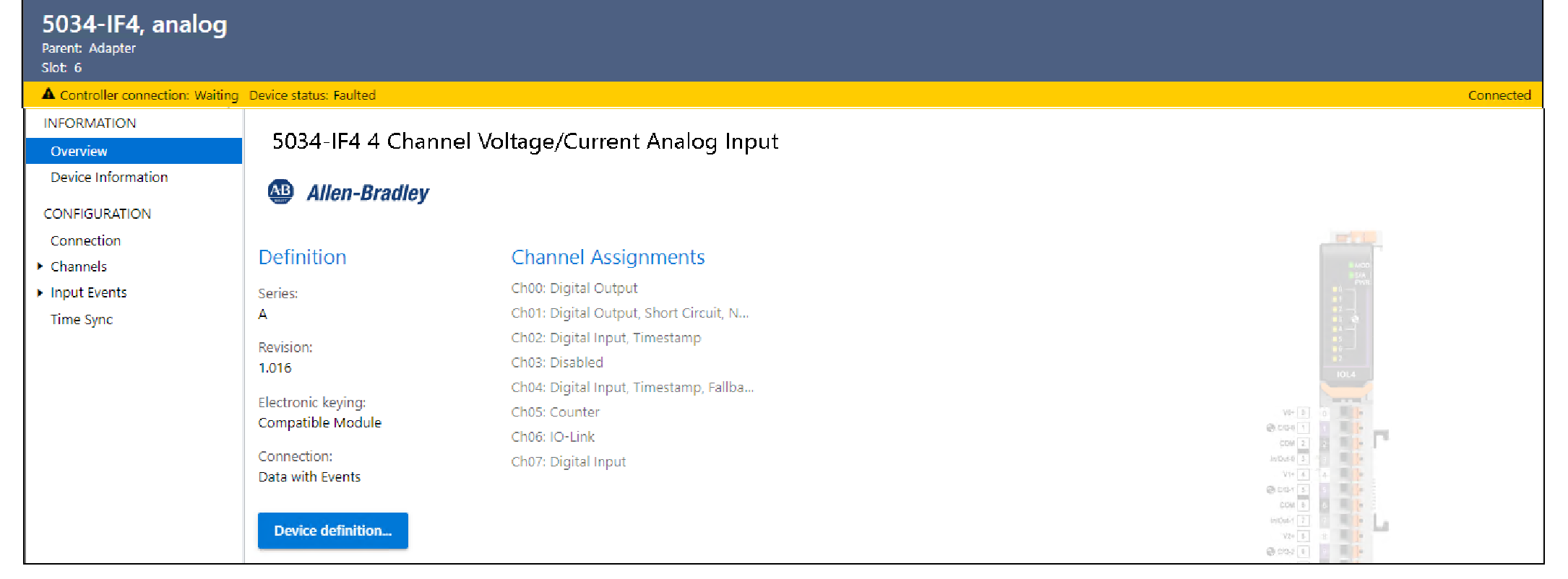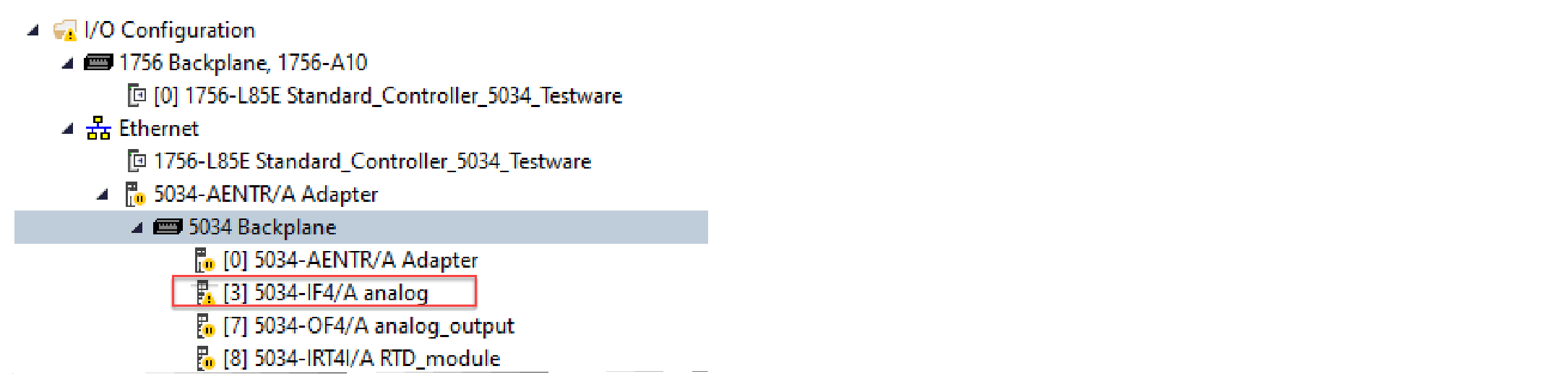 Verifique o organizador do controlador para ver se há um ícone de advertência no módulo.