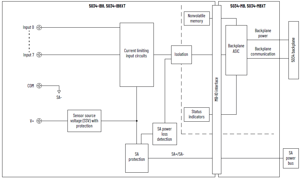 Diagrama de blocos de funções 5034-IB8 e 5034-IB8XT