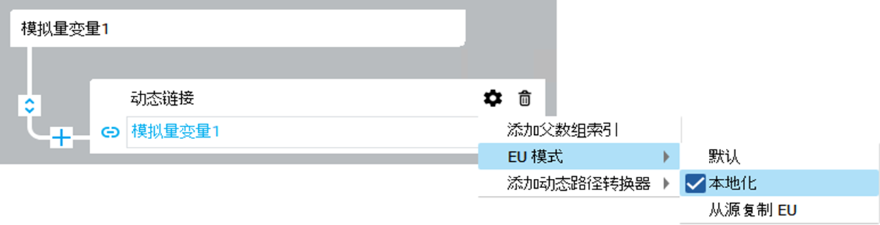 - 使用在模拟量变量1属性和实际模拟量变量1变量之间创建复杂动态链接。
