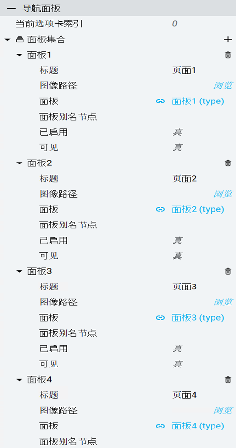 导航面板属性:面板(选项卡)
