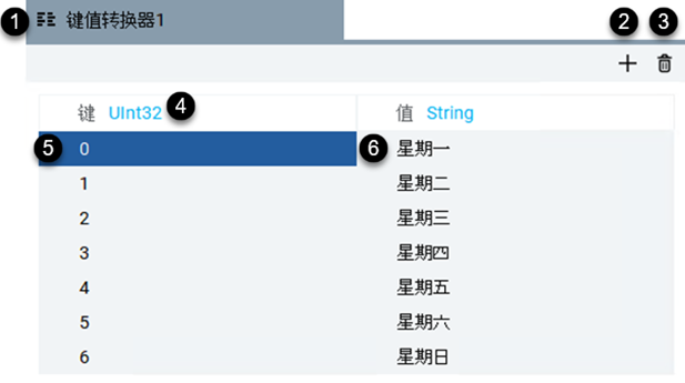 第一行中的值为默认值。如果源值与任何转换器键均不对应,则转换器返回默认值。