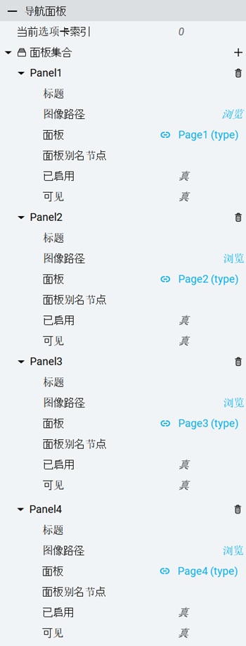 导航面板属性:面板(选项卡)