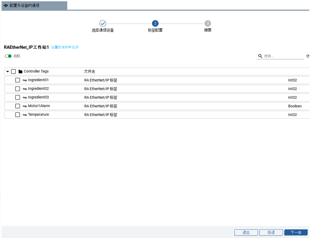 配置用于从 Logix 控制器导入示例标签(控制器变量)的通信驱动程序。