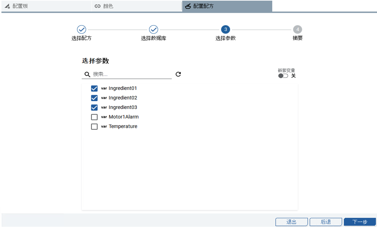 - 选择Ingredient01、Ingredient02和Ingredient03,然后选择下一步。选定变量