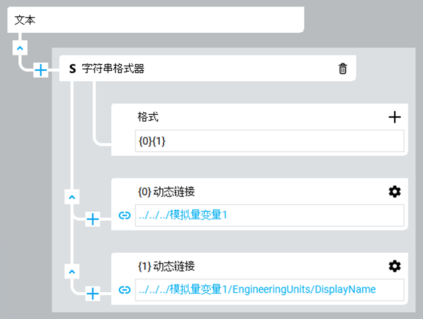 - 使用字符串格式器在文本和模拟量变量1之间创建复杂动态链接: