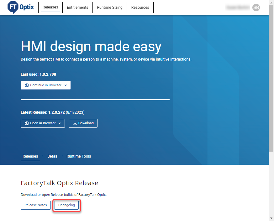 - (可选)要查看对FactoryTalk®Optix™的最新更改,请选择更改日志。