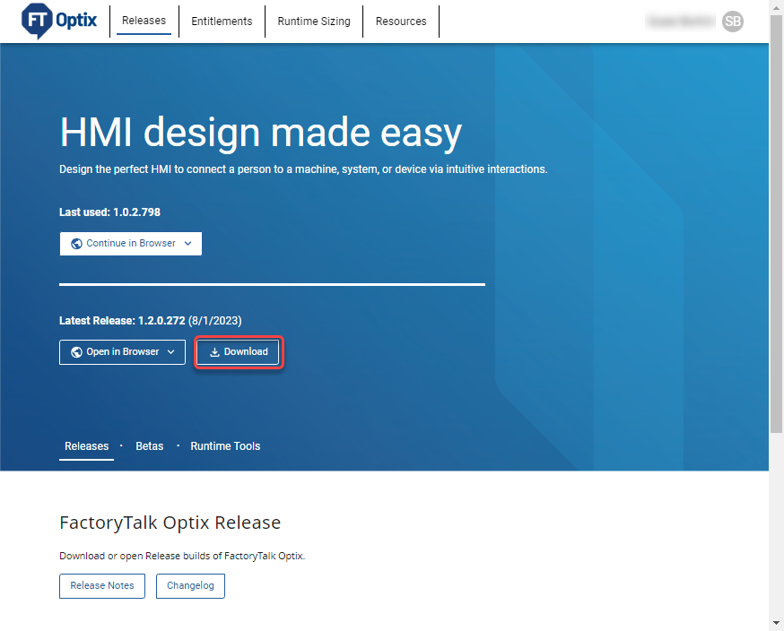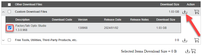 。然后,无需购买权利即可开始使用。- 选中FactoryTalk Optix Studio旁边的复选框,并在顶部选择立即下载的第一个实例。