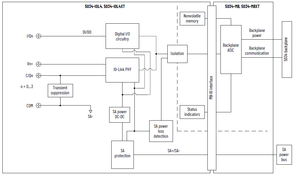 5034-IOL4 和 5034-IOL4XT 功能块图
